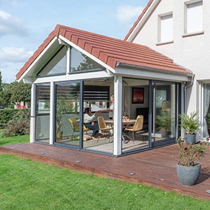 Avec sa toiture traditionnelle et son système breveté d’assemblage de pièces alu à l’extérieur et de bois à l’intérieur, elle procure un confort thermique et acoustique identique ou supérieur à celui de votre maison.
