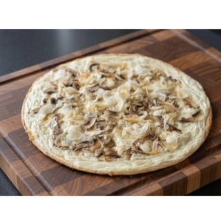 Fond à tarte flambée, crème, champignon, oignon.